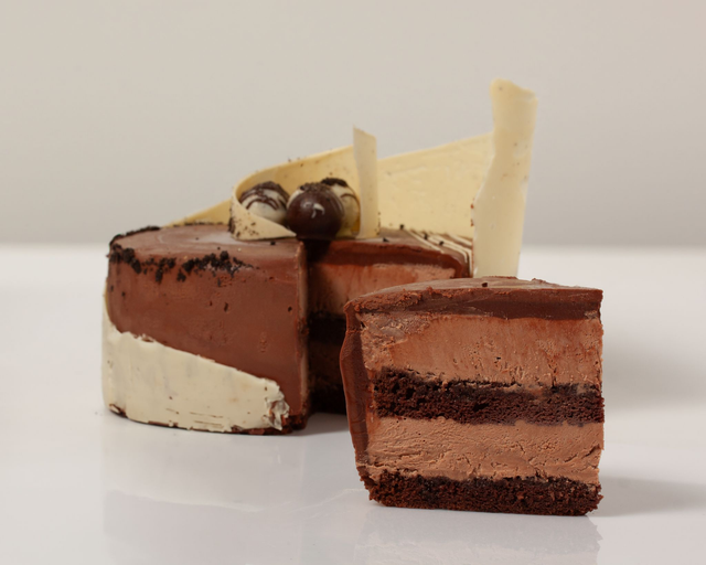 A classic favourite, elevated. This cake features two layers of soft, moist chocolate sponge, generously filled with smooth, airy chocolate mousse. Finished with a rich dark chocolate ganache glaze, it’s simple, elegant, and deeply satisfying — the perfect choice for any chocolate lover.