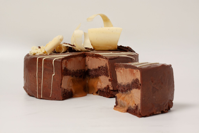 A decadent twist on a classic. This cake features two layers of soft chocolate sponge filled with rich chocolate mousse and a smooth layer of liquid salted caramel — the perfect sweet–salty balance. Finished with a glossy dark chocolate ganache glaze, it’s indulgent, elegant, and irresistible.