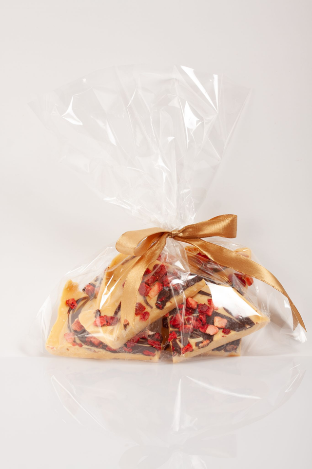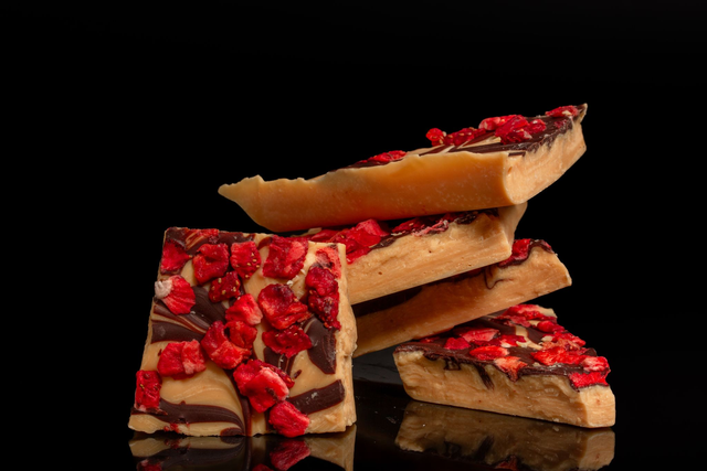 Indulge in the rich, velvety taste of our handcrafted broken chocolate, made with Callebaut’s finest white and dark chocolate and infused with real fruits for a perfect balance of sweetness and texture.